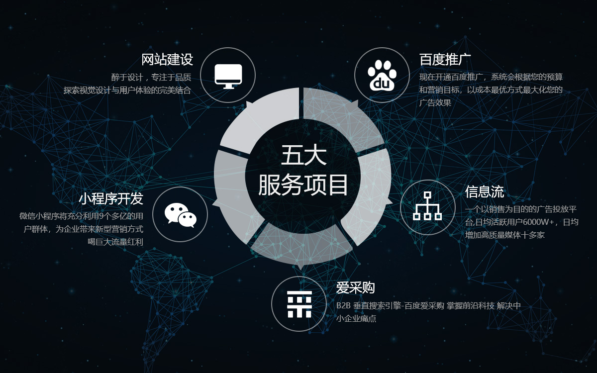 集團(tuán)以為企業(yè)提供最完善、最有效的網(wǎng)絡(luò)營銷策劃方案為使命,目前擁有九家全資分公司,囊括電子、機(jī)械等在內(nèi)的 37個(gè)一級行業(yè)和201個(gè)二級行業(yè)。業(yè)務(wù)覆蓋青島、濟(jì)南、煙臺(tái)、濰坊、威海、日照、臨沂等山東半島,經(jīng)營業(yè)務(wù)主要有搜索推廣、直通車、糯米、信息流、全景地圖、金融、滴滴打車、網(wǎng)絡(luò)增值、瑞思英語九大模塊,是搜索、糯米、金融、滴滴打車等互聯(lián)網(wǎng)企業(yè)在山東半島的獨(dú)家運(yùn)營商與合作伙伴。